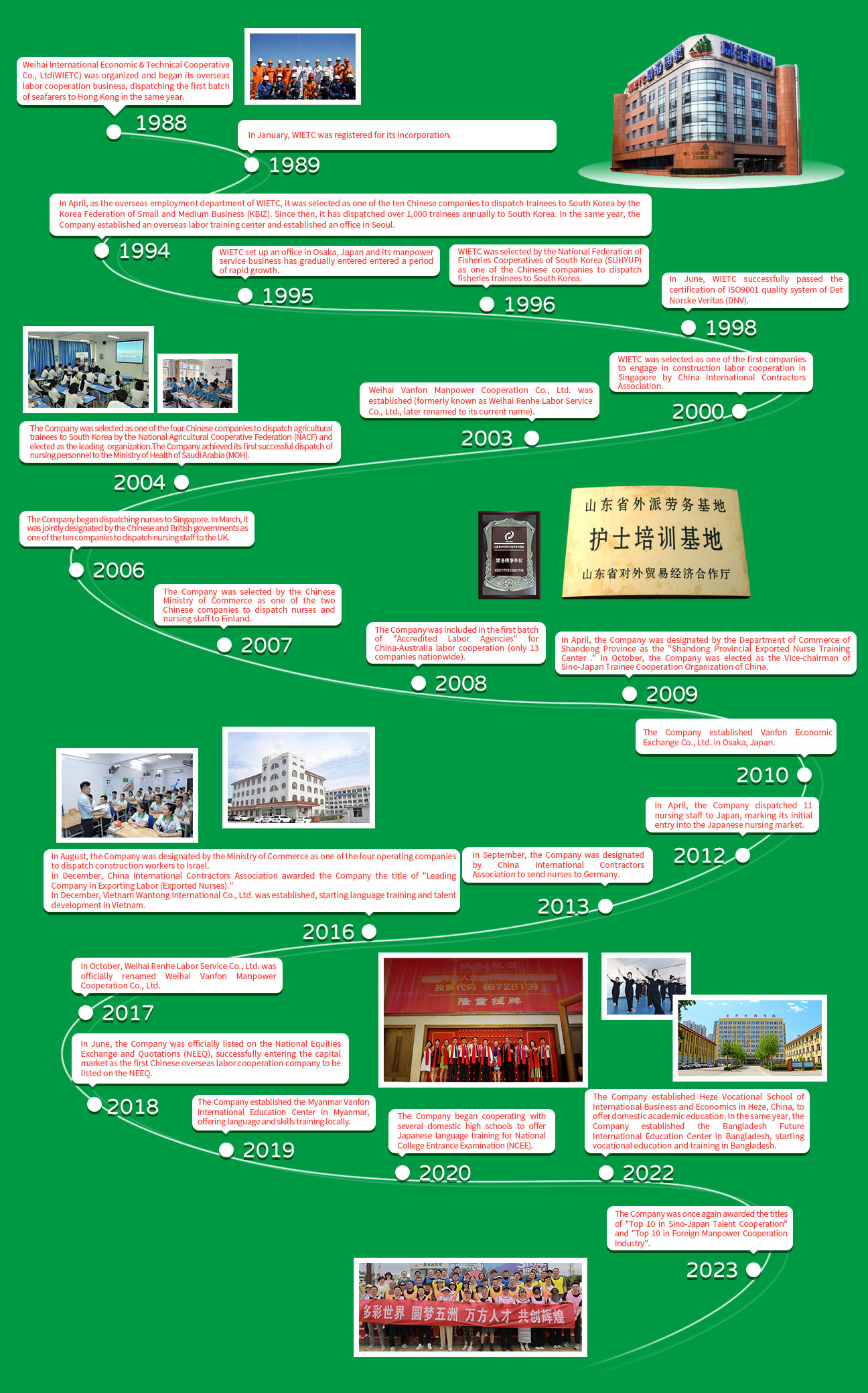 With 36 years of experience in overseas labor cooperation, the Company has dispatched approximately 120,000 personnel of skilled workers to over 30 countries and regions, including Japan, South Korea, Singapore, Israel, Germany, Australia, New Zealand, the UK, and Africa. These workers are engaged in over 50 industries, including food processing, electronics, automotive parts, construction, nursing, hotel services, seafaring, welding, and mechanical processing.